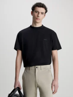 • targhetta logo Calvin Klein tono su tono sul petto